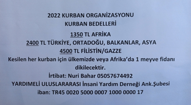 Derneğimiz, kurbanda derneğimize gelemeyecek durumda olan kişilerin evlerine bizzat giderek makbuz karşılığında kurban bedellerini nakden almış ve ilgili yerlerde kurbanlarının kesilmesi sağlanmıştır.
